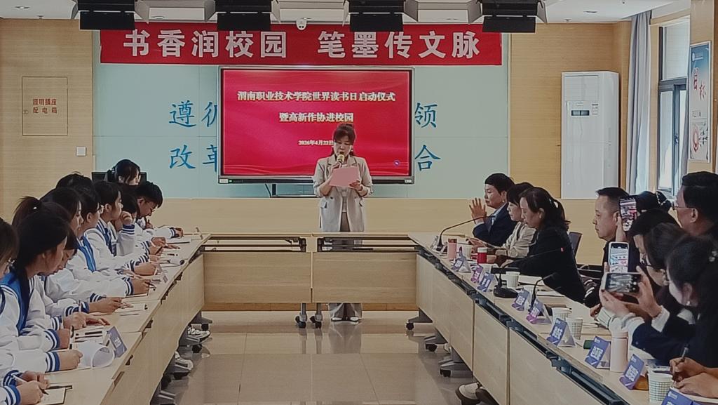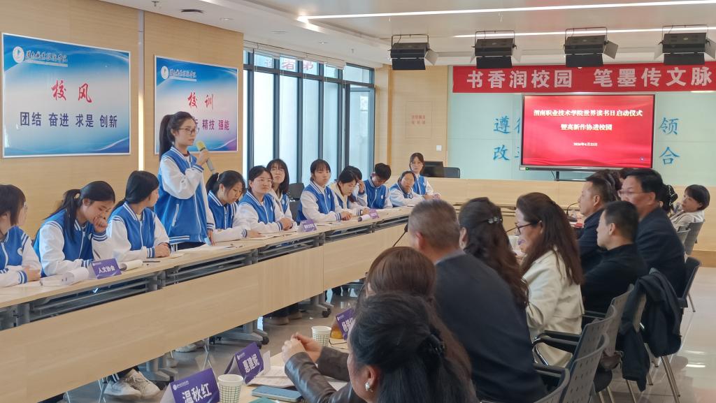 为深入推进全民阅读工作,传承中华优秀传统文化,厚植校园书香底蕴,营造“爱读书、读好书、善读书”的浓厚氛围,4月22日下午,我校以第31个“世界读书日”为契机,成功举办世界读书日启动仪式暨渭南高新作家协会进校园活动。渭南高新作家协会主席赵治安,副主席徐杏花等一行12人莅临活动现场,我校图书馆馆长井德江、副馆长李博、团委副书记牛文妍等领导出席活动,社团学生代表齐聚一堂,共赴一场兼具文学底蕴与青春气息的书香盛宴。