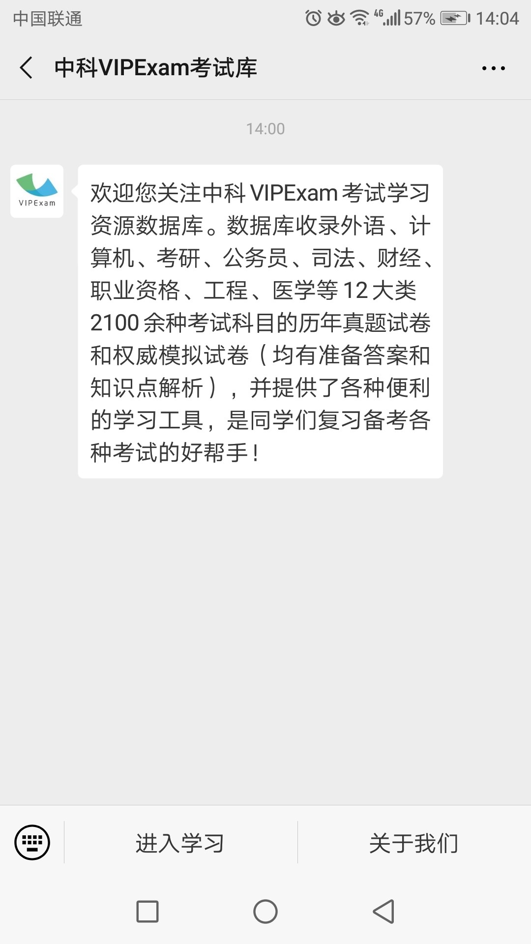 1、扫描以下二维码关注中科VIPExam考试库微信版